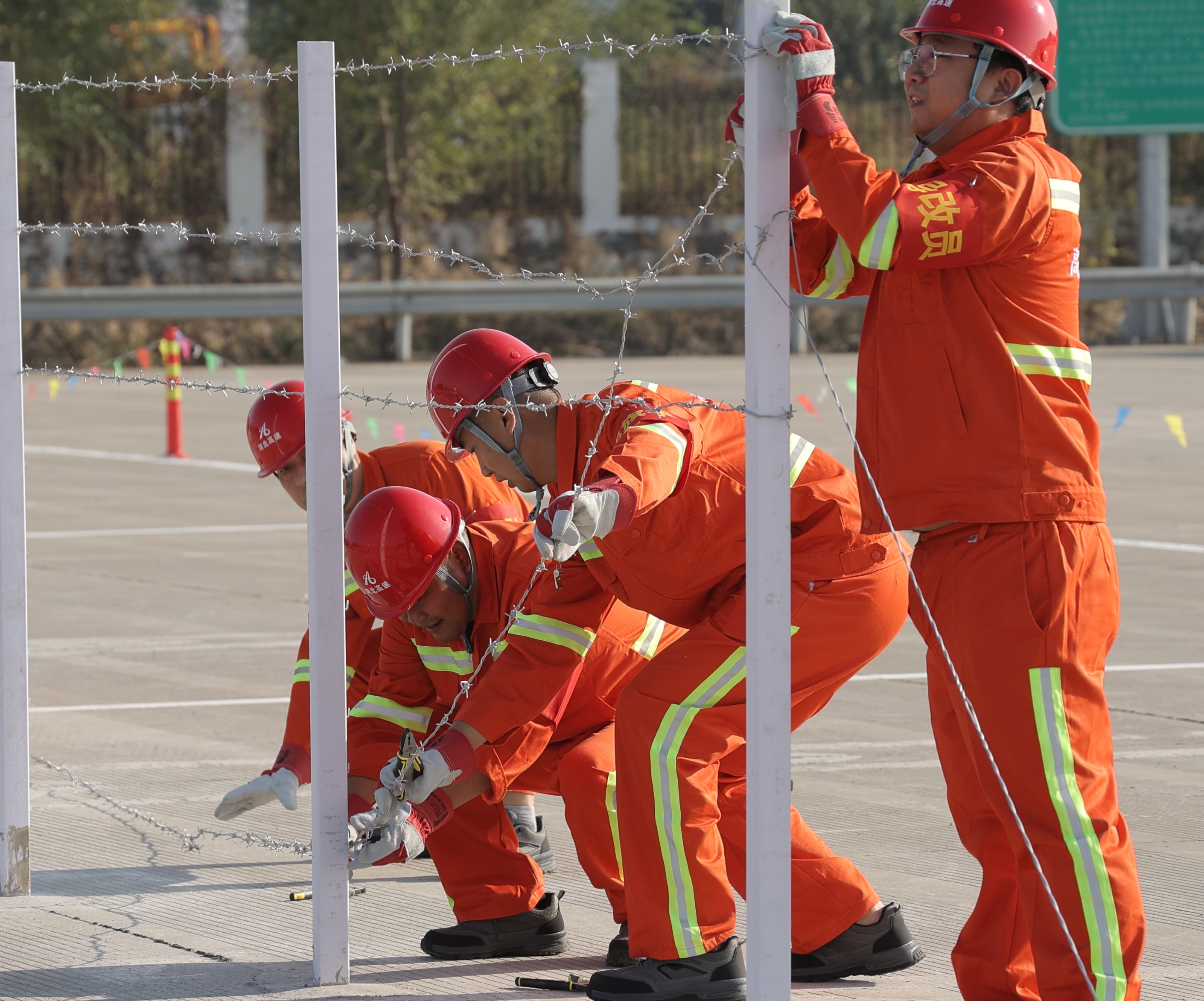安全岗位比武通过养护作业区布设、安全知识书面答题、知识抢答、消防器材实操四项内容,全方位检验养护人员安全技能。养护作业区布设环节,选手们合理规划作业区域,规范设置警示标识;书面答题涵盖安全生产法律法规、施工现场安全要点、双控机制、消防安全等关键领域,选手沉着作答,彰显扎实理论功底;知识抢答环节氛围紧张激烈,成为整场比武的“燃点”,各队选手紧盯抢答器,凭借对安全知识的熟练记忆与快速反应,争相按下抢答键并精准作答,彰显过硬的安全知识素养;消防器材实操比武聚焦“实战考核”,选手们迅速穿戴防火面罩,完成规范灭火,并清晰报出关键步骤,将日常应急训练成果转化为现场的高效处置能力。