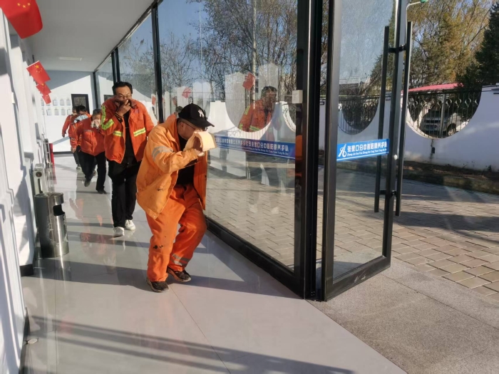 实战练兵,提升应急“硬本领”,消防演练中,专职安全员讲解干粉灭火器使用、初期火灾扑救技巧,演示“提拔握压”步骤。信号发出后,参演人员弯腰捂鼻有序撤离、清点人数;应急小组携带器材扑救“初期火灾”,演练紧张有序,实现“以练促学、以练促战”。