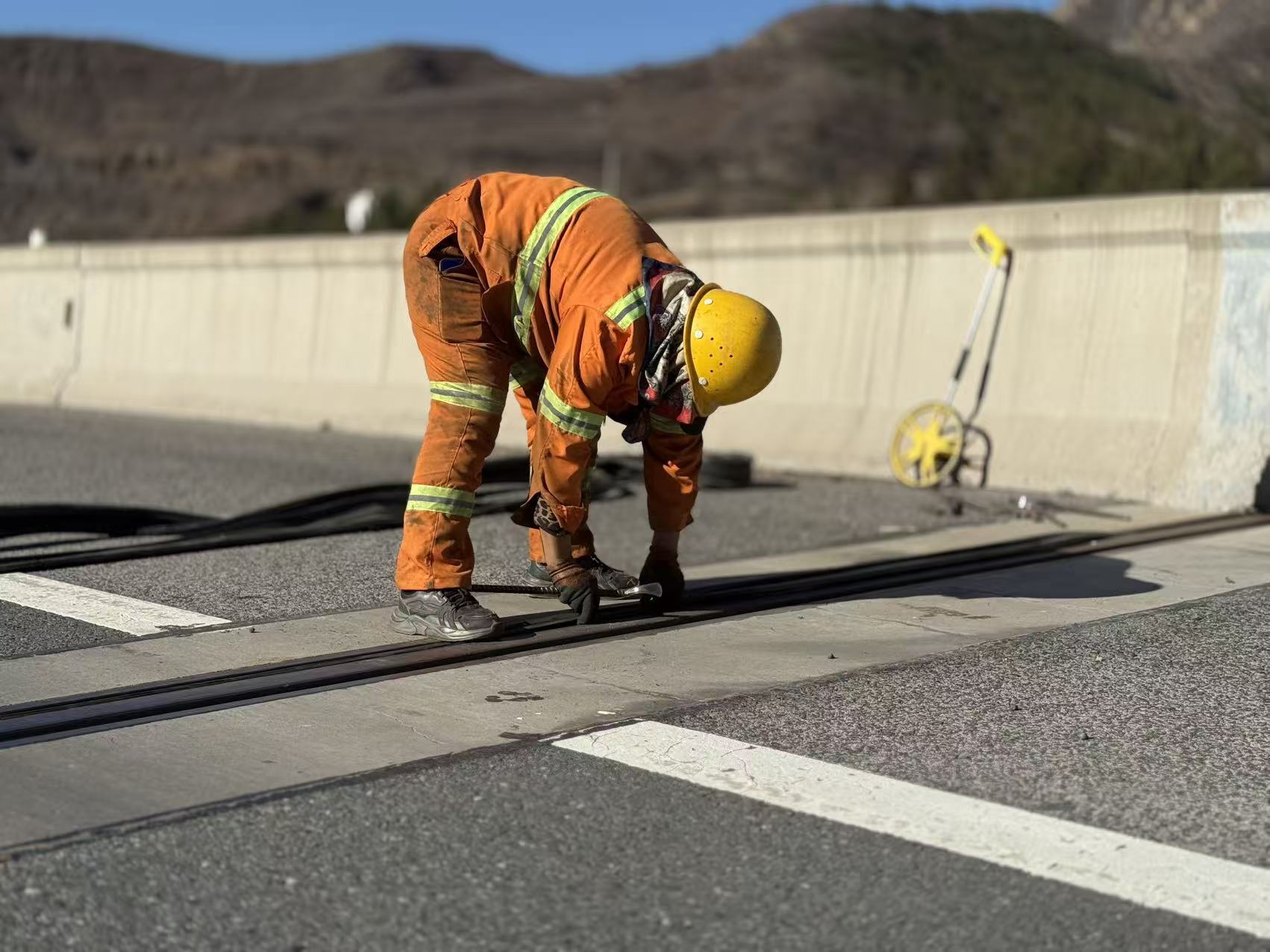 桥梁伸缩缝胶条对于提升桥梁通行安全起着十分关键的作用。随着频繁的使用和雨雪的侵蚀,双峰寺养护队辖区桥梁伸缩缝出现部分老化、破损的问题。根据保畅大队要求为减少因伸缩缝胶条损坏影响桥梁结构病害扩展导致隐患发生,需对管养段落损坏伸缩缝胶条进行更换。双峰寺养护队接到派单后立即组织人员根据班组提供病害信息对全线伸缩缝胶条进行更换。