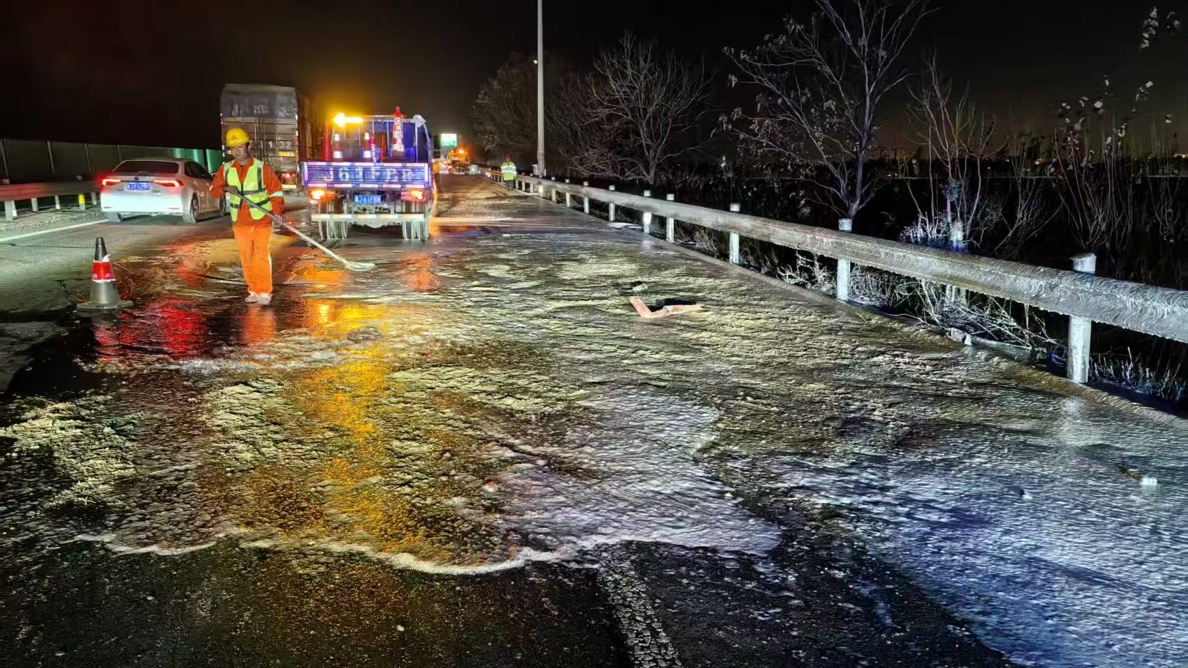 截至20时21分,经过紧张有序处置,事故现场得到全面管控,泄漏物全部清理完毕,最大程度降低了对高速公路通行安全及周边环境的影响;20时43分,事发路段恢复正常通行。此次应急处置,充分检验了沧州养护队突发事件实战能力,彰显了其保障路段安全畅通的责任担当与专业素养,为司乘人员出行筑牢安全屏障。