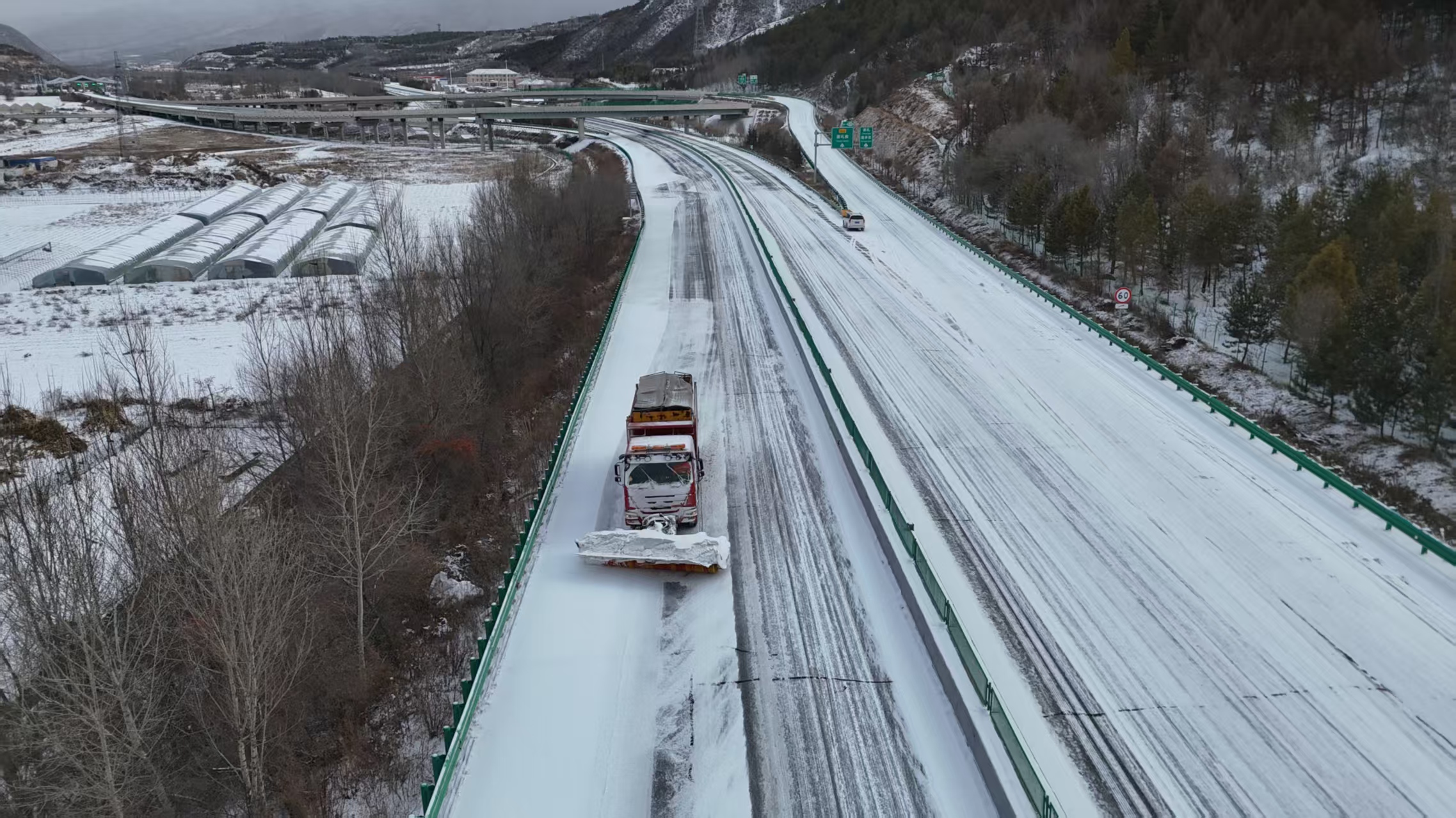 为应对此次降雪,张家口分中心早部署、早准备,提前研判天气变化趋势,制定详细除雪保通方案,对各类除雪设备进行全面检修调试,备足融雪剂等应急物资,组建专业除雪应急队伍,确保人员、设备、物资“三到位”。降雪伊始,分中心领导靠前指挥,统筹调度各项除雪工作,128名应急人员放弃休息,连夜集结奔赴各责任路段;25辆撒布车、12辆除雪车、2台装载机、16辆皮卡组成的除雪“铁军”,按照“先主后次、先急后缓”的原则,分路段、分区域开展立体化除雪作业。