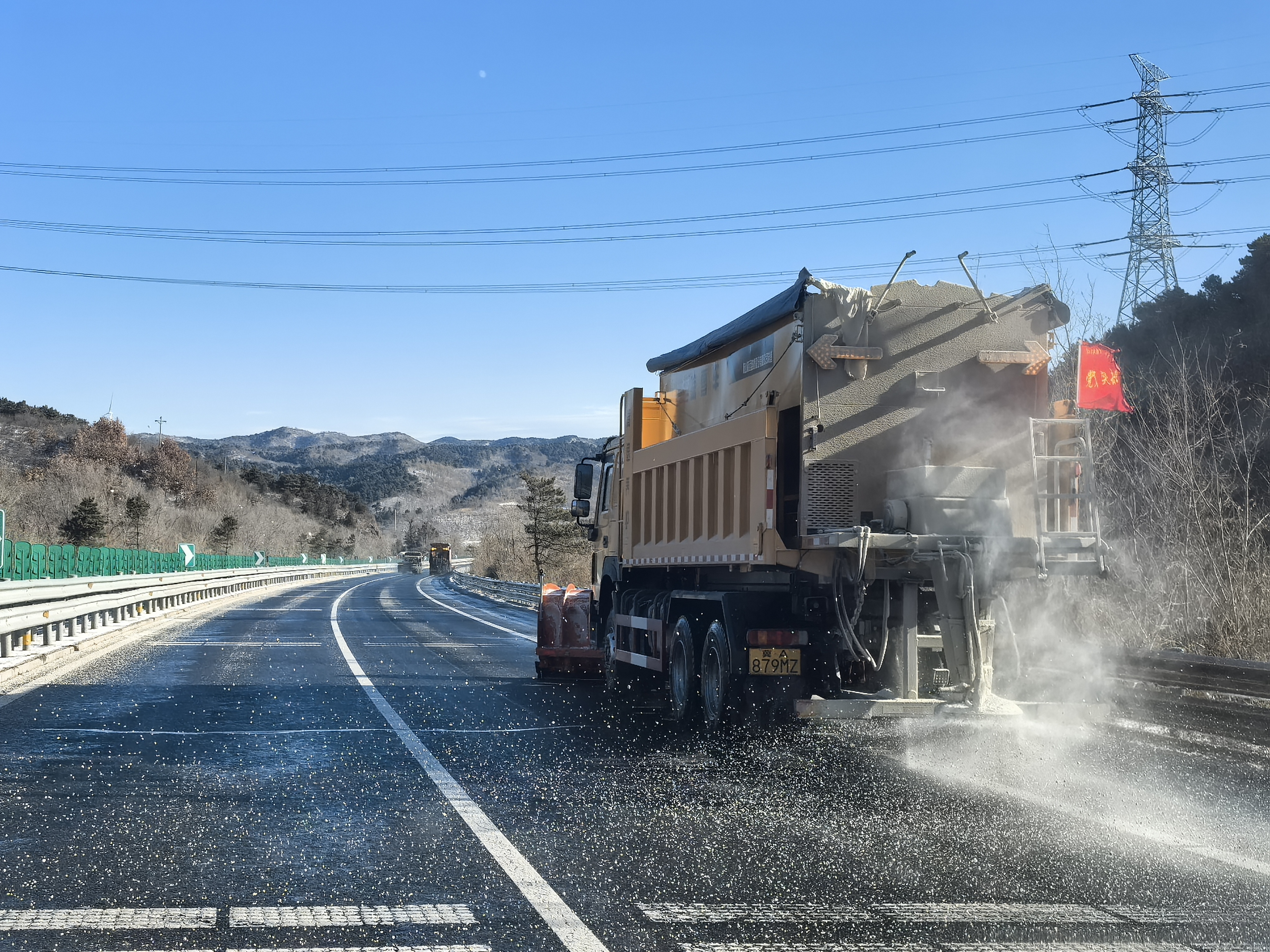 大滩地区出现“风吹雪”特殊状况,除雪难度较大。分中心精准施策,党员突击队带头攻坚,面对风吹雪导致的积雪反复和能见度降低问题,采取“循环除雪、重点撒布”策略,有效破解清理难题。目前,该区域路面已基本无积雪,车辆均可正常通行。