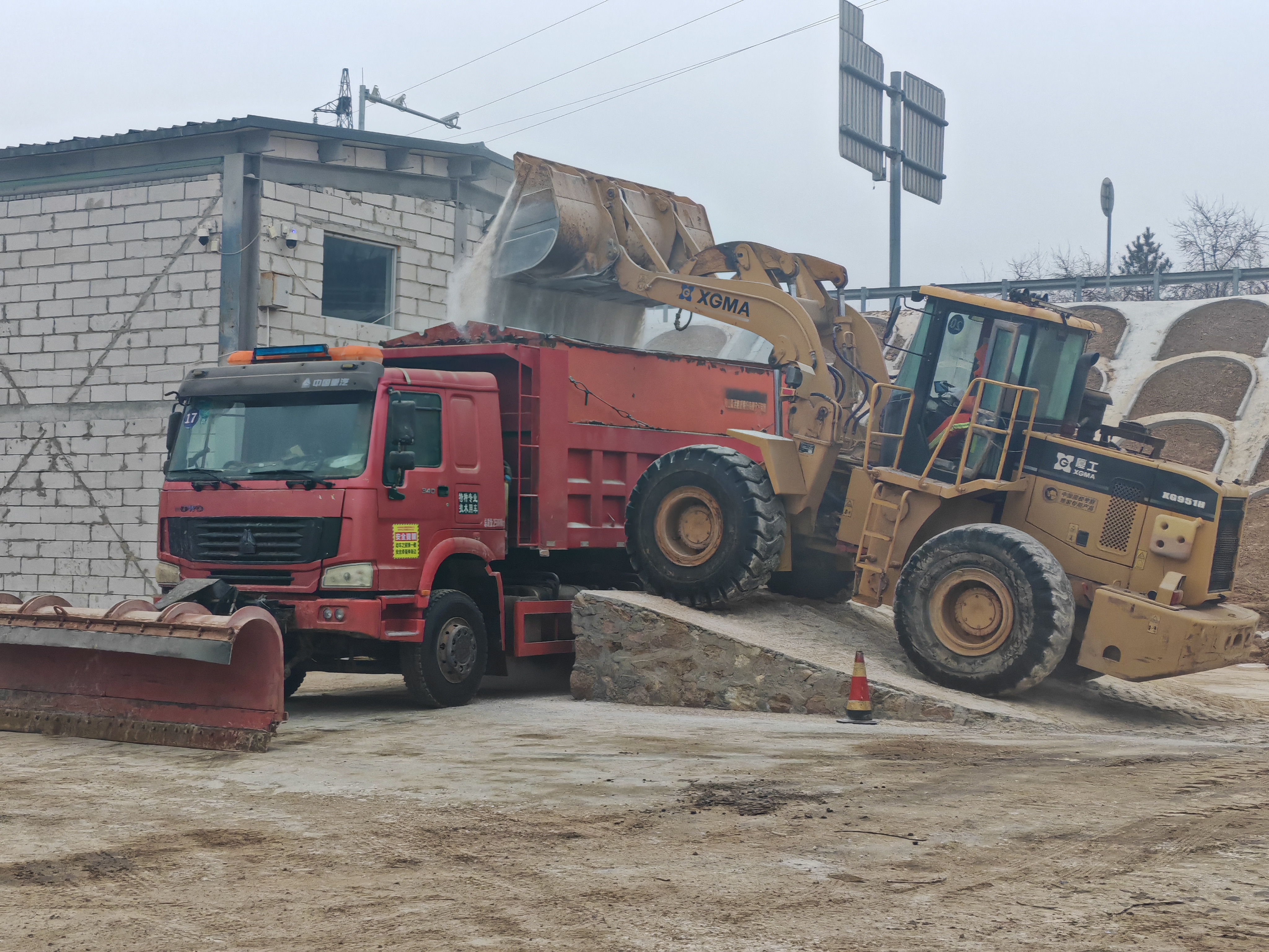 降雪前围场养护队第一时间研判雪情路况,科学调配除雪设备与人员,明确责任路段与作业流程,组织职工对除雪设备进行了全面细致的检修和维护并向除雪洒布车内提前装载融雪剂,确保除雪工作高效推进。开始降雪后,围场养护队立即响应,组织职工对管养的高速公路全线进行了融雪剂撒布作业。作业现场,养护队员不畏严寒、分工协作,撒布车有序作业,沿着辖区主次干道、重点路段开展不间断巡查与除雪作业,对急弯、陡坡、桥梁等易结冰关键点位,重点加大除雪力度,及时撒布融雪剂,有效防止路面结冰打滑,保障群众出行安全。