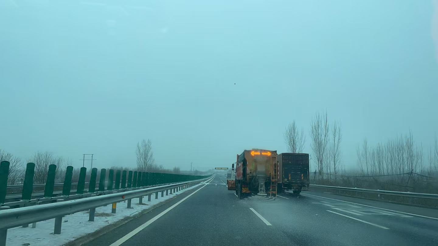 2025年12月12日,受低温降雪天气影响,涞水西辖区内道路出现降雪给过往车辆通行带来安全隐患。涞水西养护队闻雪而动、迅速响应,第一时间启动除雪保畅应急预案,全力开展道路除雪作业。