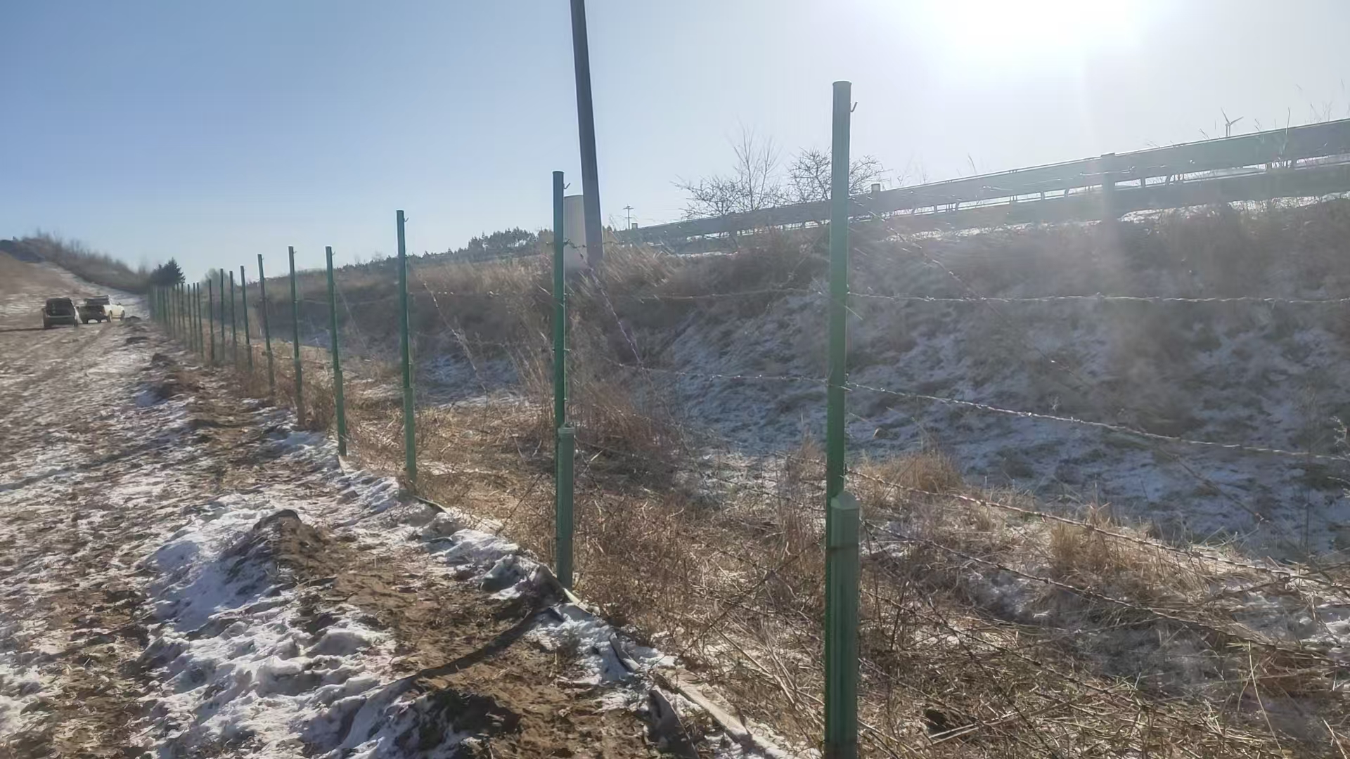1月27日,沽源地区气温低至-24℃至-10℃,严寒笼罩下,张家口分中心沽源养护队紧急接到保通保畅任务:下行K675+650处70米刺丝围栏高度不足,易导致牲畜闯入边坡,对行车安全构成隐患,需立即加高整改。