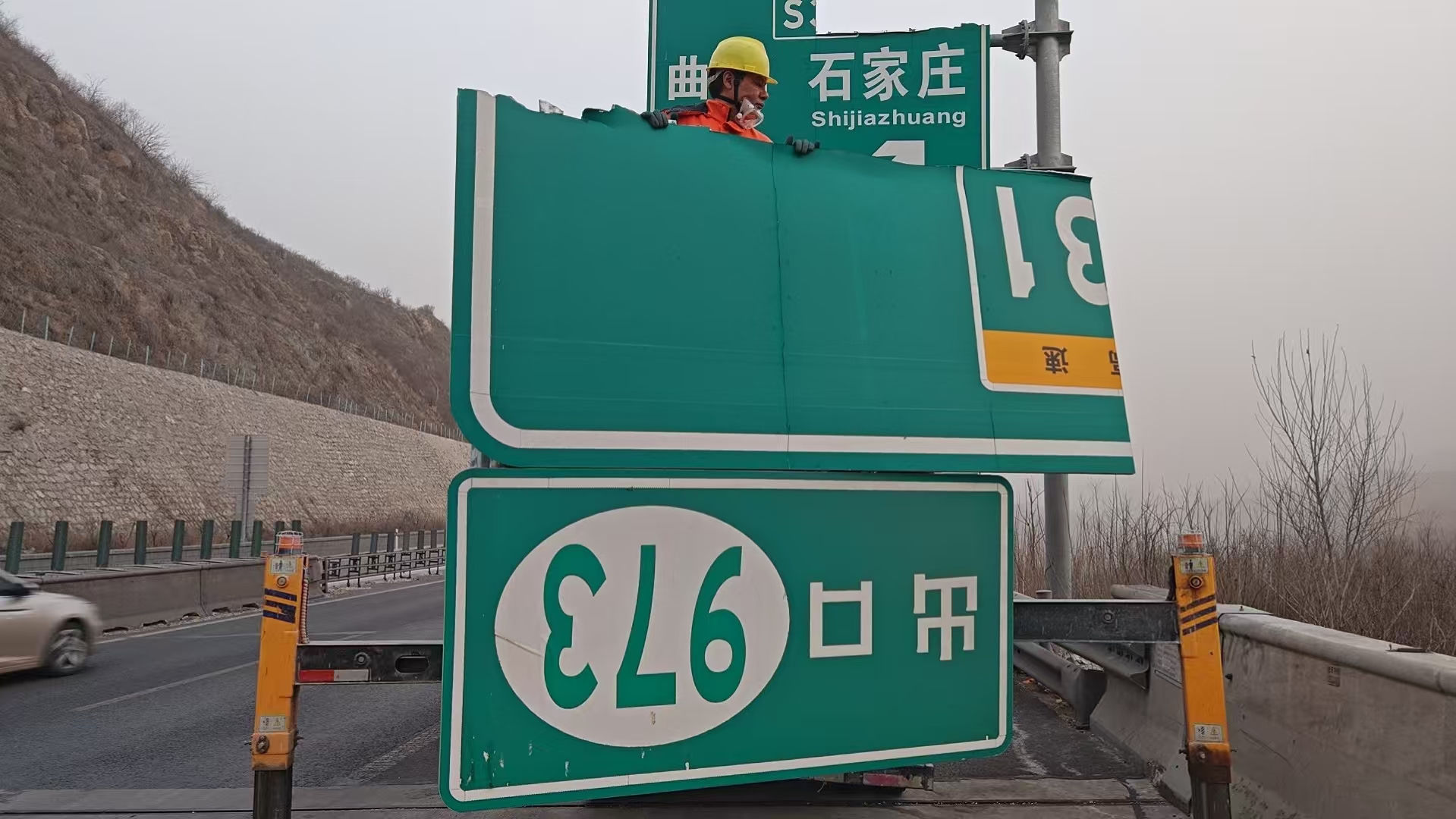 2月21日,受大风天气影响,辖区内遭遇8级大风天气,导致下行K974+800标志标牌松动,对行驶车辆安全造成极大安全隐患。涞源养护队接到通知后,快速反应,调配高空作业车、防撞车、预警车辆,携带角磨机、发电机等工具奔赴现场。到达现场后,养护队人员首先设置安全警示区域,确保作业区域安全。随后,高空作业车升至标志牌位置,使用角磨机等工具对破损标志牌进行拆除,整个过程有条不紊,克服了大风、车流量大等困难,仅用3小时就完成了拆除工作。