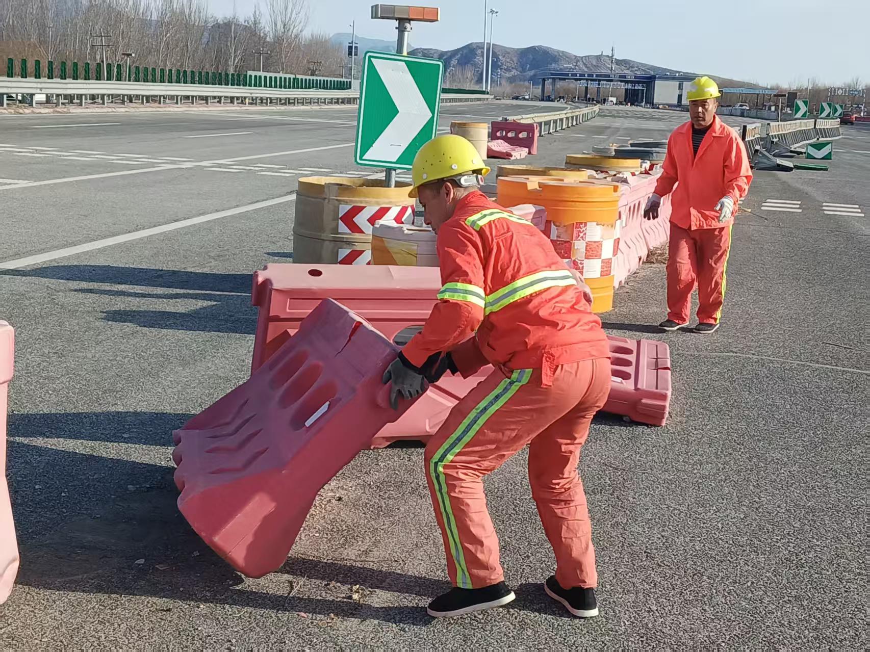 2月21日,涞水西养护队辖区迎来大风天气,持续强风席卷高速公路全线,强风导致沿线多处隔离水马被吹倒、堆叠,防撞桶移位倾斜,部分分流导向标识倒伏在行车道边缘,给春节返程高峰的车辆通行带来安全隐患。涞水西养护队闻令而动,迅速组织人员进行设施恢复工作,全力守护道路通行安全。