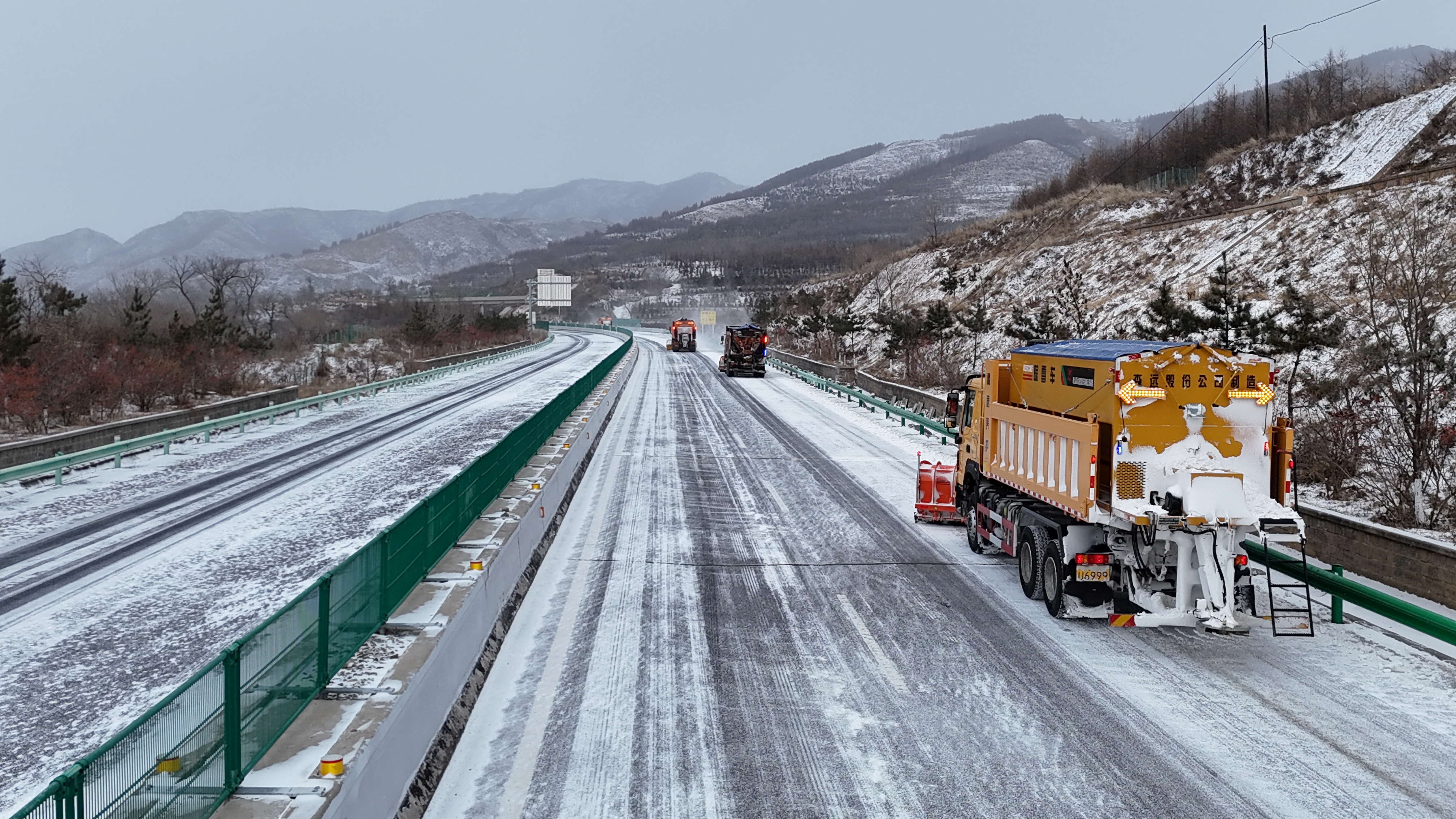 坚守一线,彰显责任担当。从清晨5时到上午11时,短短6小时内,张家口分中心养护人员顶风冒雪、连续作战。截至11时,累计出动多功能撒布车17台、装载机3台、除雪车10台、其他保障车辆6台,投入人工55工日,撒布固体融雪剂120吨,辖区降雪路段通行条件持续改善,预计当日12时完成全部除雪作业,实现“雪停路净、畅通无阻”。