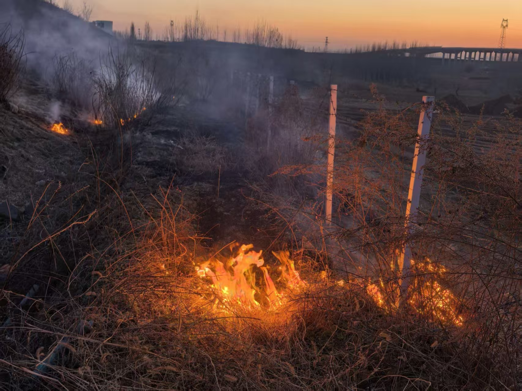 18点30分,值班人员携带灭火器、铁锹立即赶赴现场,18点44分抵达现场,经查为边沟干草起火,现场多处明火。值班人员迅速采用沙土覆盖方式开展扑救,18点58分明火全部扑灭,并仔细排查隐患,确认无复燃风险。