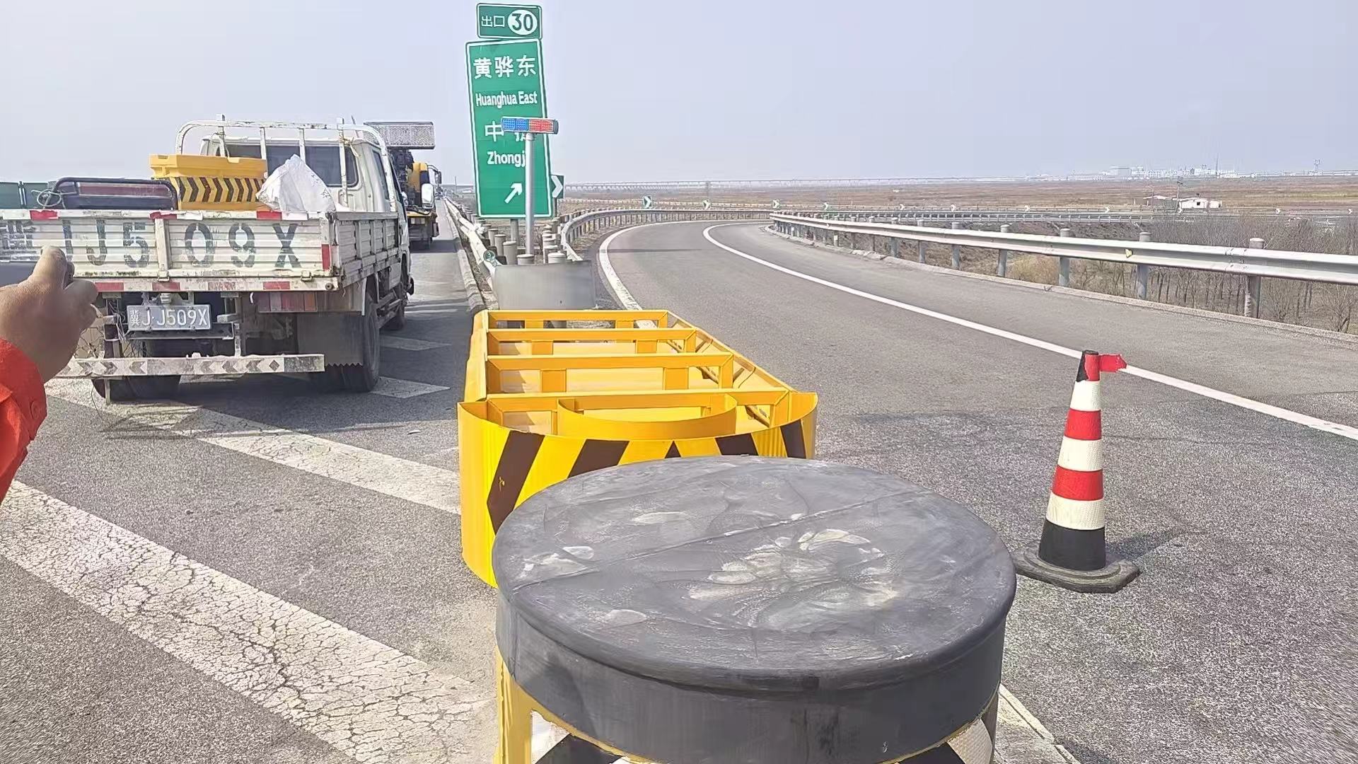 为进一步完善管养路段安全防护体系,提升重点点位防撞缓冲能力,保障过往司乘人员出行安全,3月29日上午,养护分公司沧州分中心黄骅养护队高效实施防撞缓冲装置加装工作,在黄石高速石家庄方向完成两处关键点位防撞垫安装。