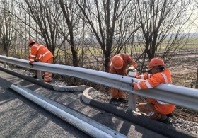 为消除道路安全隐患,保障过往司乘人员通行安全,2026年4月1日,上午9时许,养护分公司沧州分中心衡水养护队组织人员、设备、材料,对献县西收费站外广场开展钢立柱更换、护栏板安装养护作业。[详细]